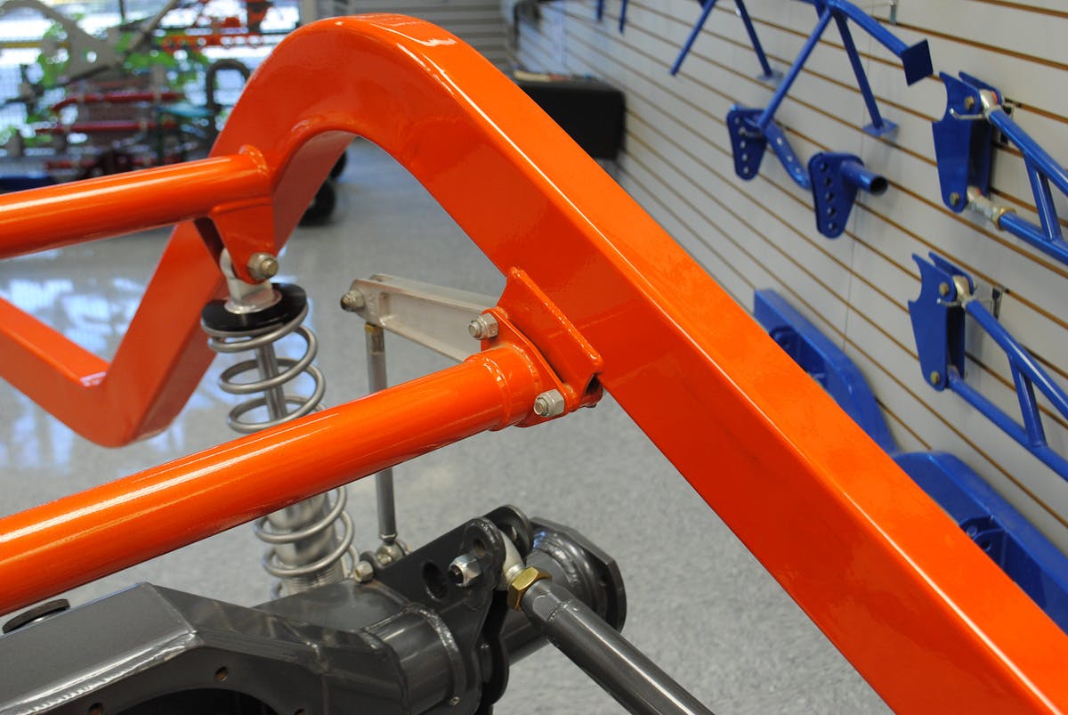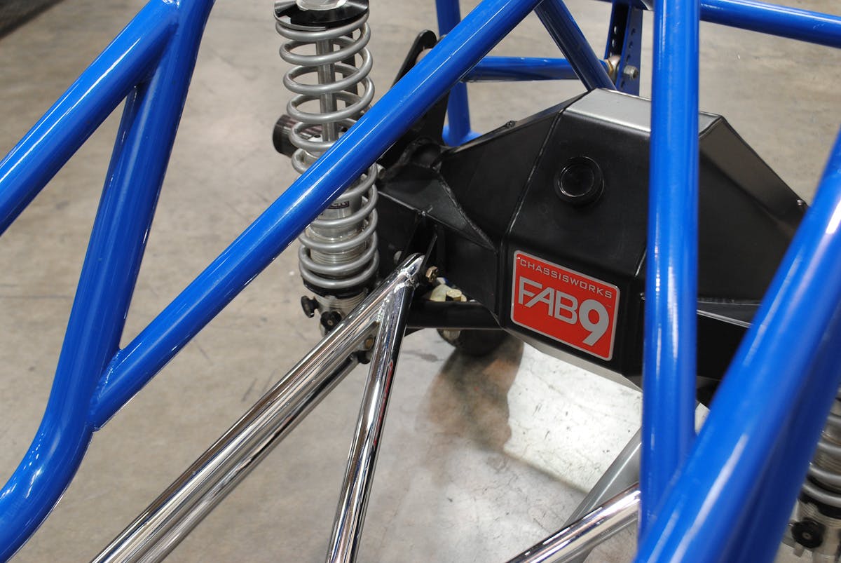 The strength of the rear clip allowed the Chassisworks boys to get serious with the rest of the components, starting with the rear end. Naturally, the Eliminator II rear clip was designed to accept the equally strong FAB9 rear-end housing and Eliminator II 4-link suspension. Available in lengths ranging from 22 inches to 62.25 inches, the mild steel (or 4130), FAB9 housings also feature precision welding, a housing fill cap and magnetic drain plug.