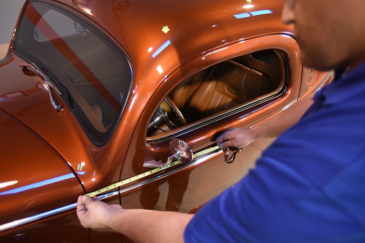 We spent a day with two Covercraft representatives, watching as they used painters tape, a tape measure, paper and pen, as well as a keen eye, to demonstrate the step-by-step measurement process on the custom 1935 Ford Coupe and the Dragzine BlownZ Camaro. By following these steps and using the dimension sheets that can be downloaded from the Covercraft website and then printed out, we built the beginnings of the custom cover patterns that fit like a glove on these highly modified vehicles.