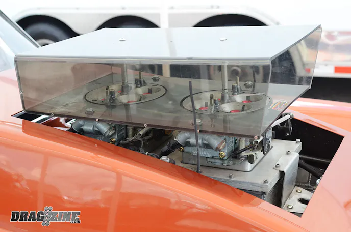 “He picked up .14-seconds and three mph in the 1/8-mile in a 7.00 index car. And the 60-foot was a couple of thousandths slower on the pass with the scoop, so it wasn’t the track or the weather. – Troy Pirez, Jr.Big-inch nitrous powerplants that push the intake higher and closer to even the tallest cowl hoods necessitated the clear scoop, as many classes either outright ban snorkel scoops or try to dissuade their use through “spirit of the class” rules. With the hood sitting right on top of the carburetor or throttle bodies, the engine can become starved for fresh air, especially at speed, when the hood can be pressed down even lower thanks to extreme pressure from the big speeds these cars experience. While a snorkel scoop would certainly solve the problem, they really don’t look very “street car” on a hotrod that otherwise fits that mold for the most part. So, the lexan scoop is an ideal compromise, maintaining a low-key appearance while allowing the engine to get a sufficient supply of fresh air. Plus, most racers and fans agree that they do look pretty cool, especially compared to a Pro Mod-style snorkel.