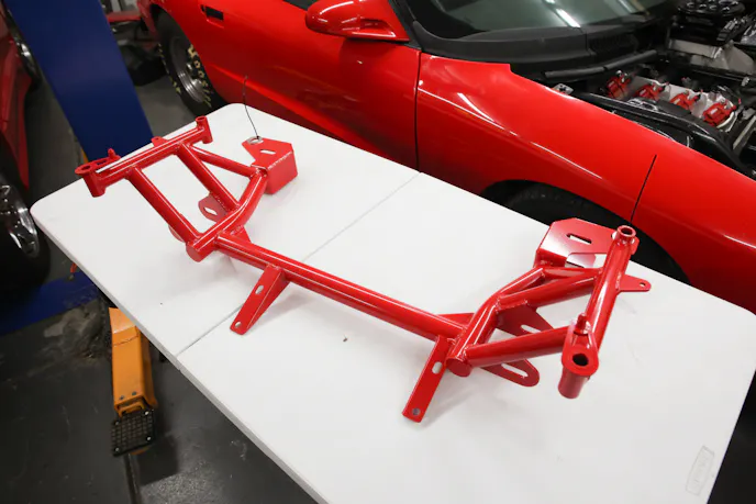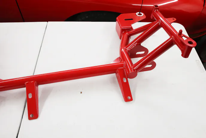 The foundation for our updated suspension is a new K-member. This new tubular K-member gives us more adjustments and is set up for a manual steering rack. The 1-5/8-inch x 0.120-inch-wall and 1-1/4-inch x 0.095-inch-wall DOM tubing make this unit very strong, perfect for our setup.
