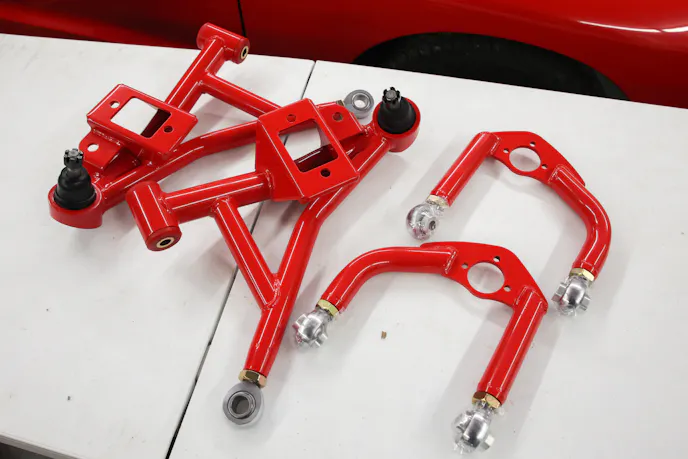 “With A-arms, you are going to want something that is light, yet durable enough to handle the abuse of drag racing. Typically, most drag race A-arms are made of chromoly steel which is light but still strong. Also, some adjustable A-arms also allow you to adjust the track width of the vehicle. Pretty much all adjustable A-arms will give you additional alignment adjustability to be able to fine-tune the alignment for optimal specs for your application,” Briese says.