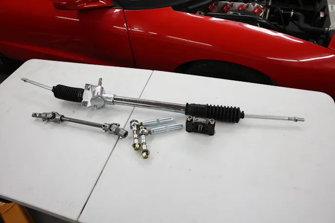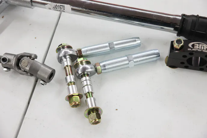The final piece of our front-end puzzle was the manual steering rack. BMR makes a manual rack that’s a direct fit for our 1996 Firebird and its tubular K-member. The kit that BMR developed features a custom width that uses an extension that’s biased toward the passenger side. This relocates the steering shaft an inch toward the driver’s side and allows for improved header clearance. The BMR manual steering rack also gives us more adjustment options for the tie rods so we can properly set our bump steer. The manual steering rack that was on the car didn’t allow for this and it made driving the car a chore.
