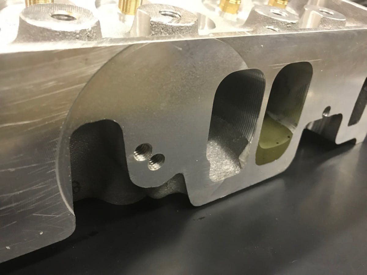 Having the ability to work with a set of aluminum heads as opposed to iron heads is a nice upgrade on paper, but it presented CFE with a whole new set of challenges. Since the INDY cylinder head comes with a larger valve size and port volumes, CFE needed to come up with a way to shed some of that volume to stay within the Super Stock rules.