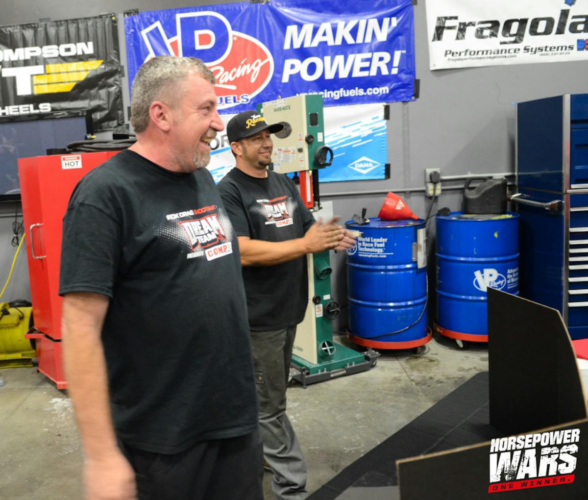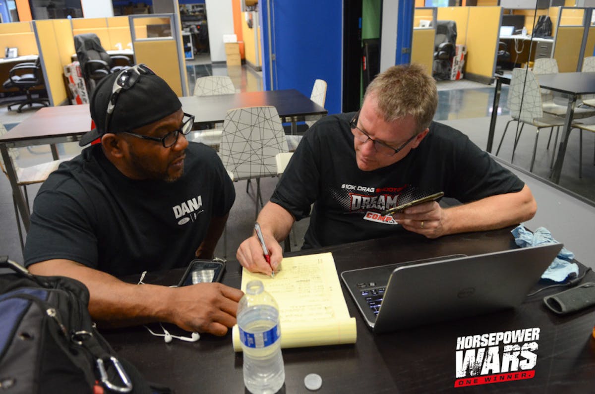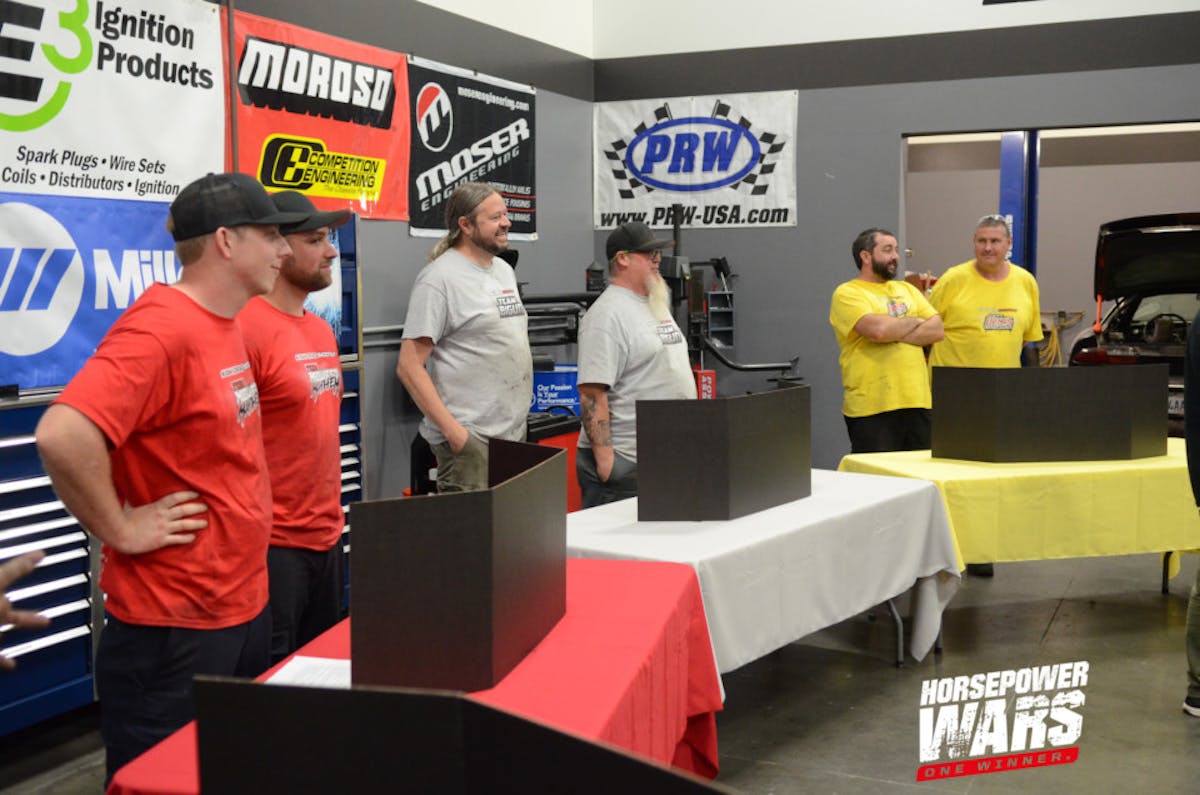 As the teams wrapped up a physically-demanding second day of the build, their minds were put to the test in the second challenge of the build-off: a drag racing trivia contest. Each of the teams selected two members to represent their squad, and the Horsepower Wars staff presented each of the teams with nine questions, to which they had a limited amount of time to present their answers.
