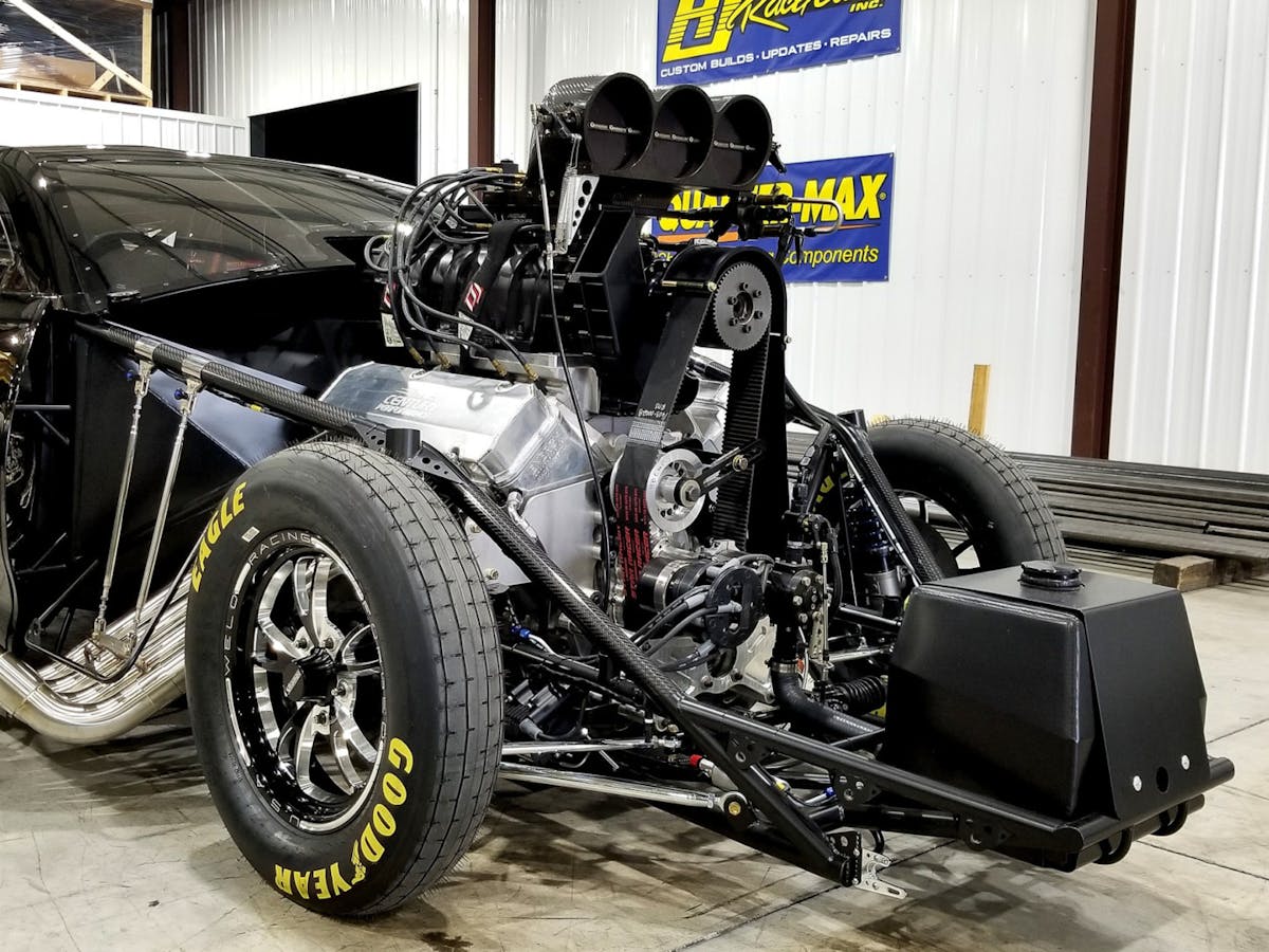 The RJ Race Cars Pro Mod double-framerail chassis is set to handle the task of several thousand horsepower. That power comes via a supercharged big-block Chevrolet engine, and will rely on a M&M transmission and PST carbon-fiber driveshaft to put that horsepower back to the rearend.