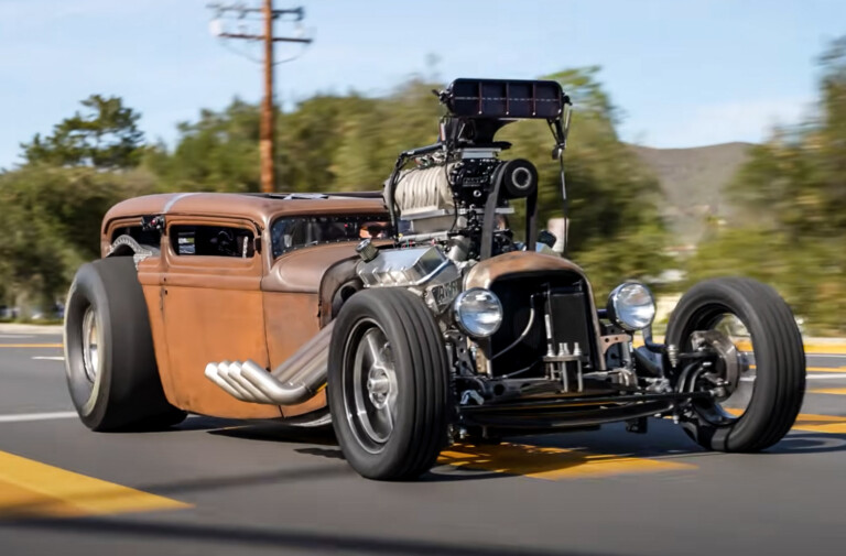 Griffin Steinfeld has never been one to play it safe with his builds, but this latest machine, crafted in collaboration with renowned fabricator Rat Rod Jeff Jones, might be his most unhinged creation yet. It’s raw, it’s loud, and it’s fast. Built from a ’32 Ford Model B shell and powered by a Top Fuel-derived supercharged big block, this rat rod is a rolling piece of industrial art with dragstrip credentials.