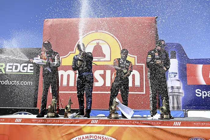 Funny Car — Austin Prock, Chevy Camaro, 3.904, 333.82 def. Spencer Hyde, Ford Mustang, 3.956, 323.35.