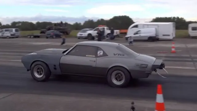 Blauth and the team from VTG in Poland have been working on perfecting his Camaro for a few years and have been steadily chipping away at making it faster. The car is powered by a small-block Chevy that’s filled with top-shelf parts and is connected to the Typhoon’s AWD system via a TH400 transmission. Providing the boost for the built small-block is a pair of Turbonetics snails. The car weighs nearly 3,000 pounds, so it’s making well over 1,500 horsepower to lay down its single digit passes.