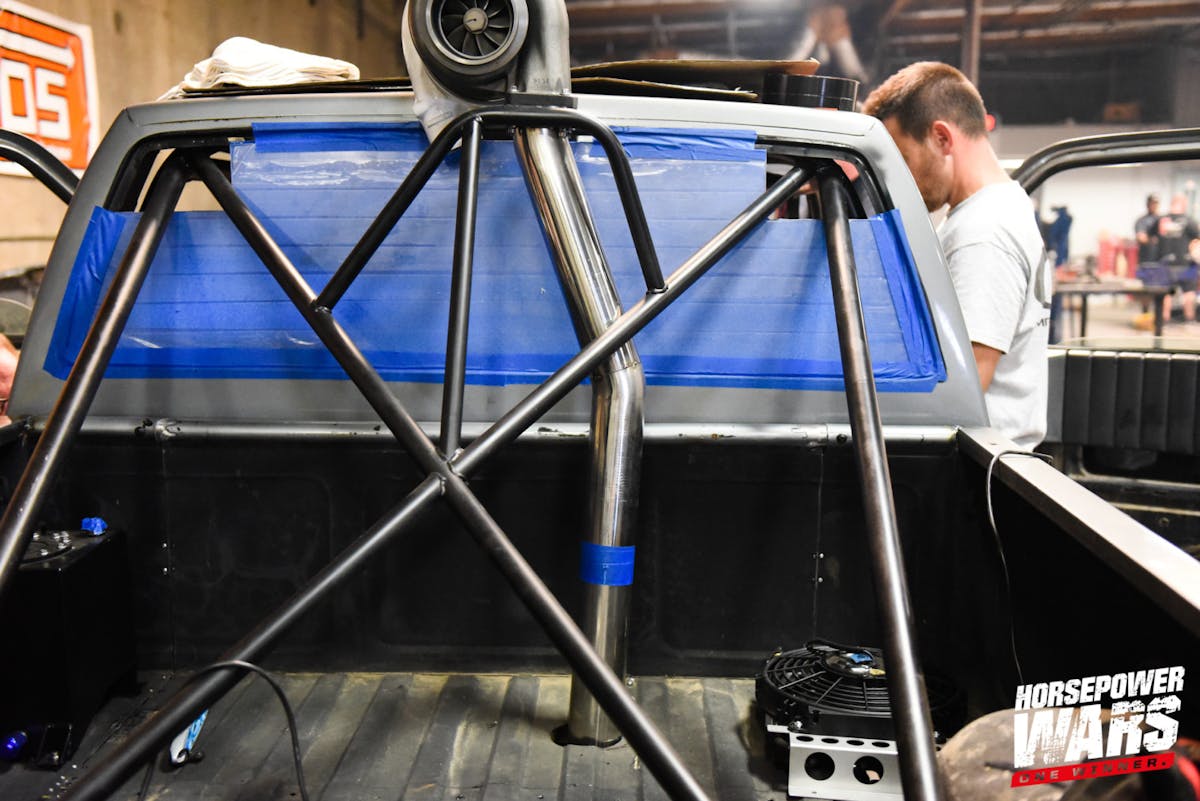 Right out of the gate, MAK wanted to make an impression with its S-10, and it did that by mocking its turbocharger up above the roofline, just behind the cab, on the pickup truck. To the bewilderment of the other teams, MAK began welding the bracing in place and then fabricating the hot side through the rear window, right past driver Nick Taylor’s shoulder. Will it work? We’ll see come raceday.