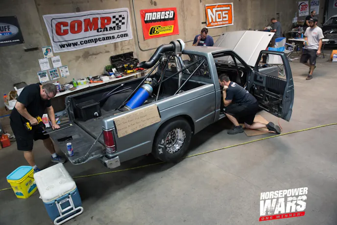 Team MAK was the first to fire its engine, but team leader Adam Hodson and everyone has been methodical in their approach to wiring and plumbing, believing they have the vehicle to beat and choosing to leave nothing to chance. With everything finally wrapped early on day 10, MAK is the second team to head over to the dyno to put the S-10 and its wild top-mounted turbo setup through its paces.