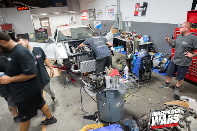 We’ve arrived at the final day-and-a-half of this 10-day buildathon, and blood, sweat, tears, and nearly some punches have been thrown to get each of the four teams to this point. In just a few hours, the final bell will ring on the last of two grueling 16-hour days, and what’s done is done. The teams will have an off-day and then they’ll head to the Barona Dragstrip in Southern California, where they will then have a day-and-change to test and dial in their cars, get qualified, and then it’s game-on for $10,000 and a pink slip. The losers? Well, they go home with their tail between their legs and the clothes they brought with them.